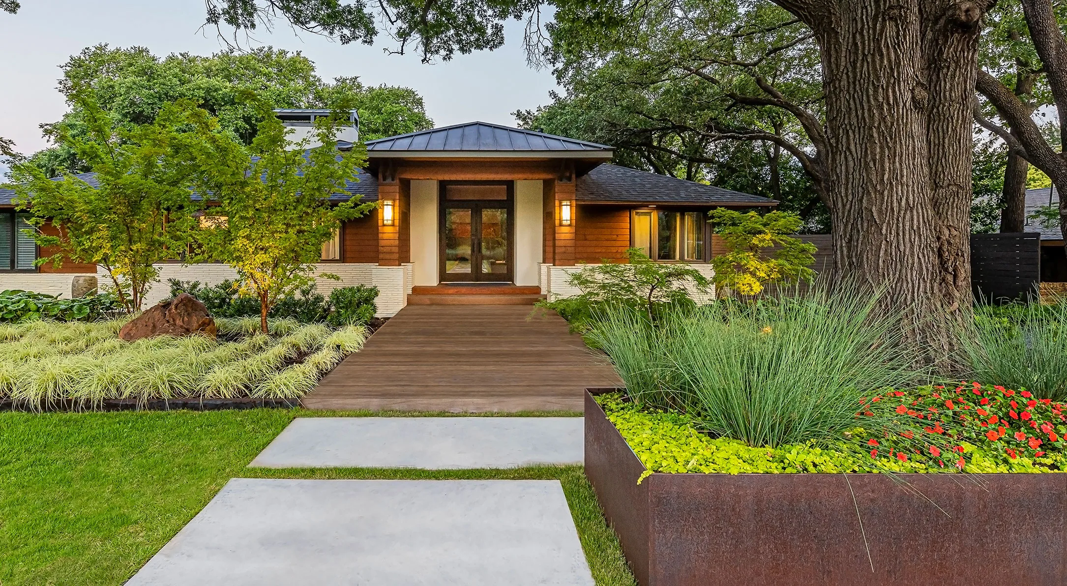 Planting is installed with the same care as the construction work around it. Layout, spacing, and plant selection are guided by site conditions, the architecture, and how the garden will grow over time.